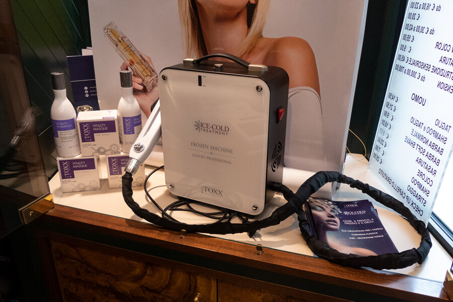 Laboratorio separato dal salone per l'istallazione di protesi capelli.
